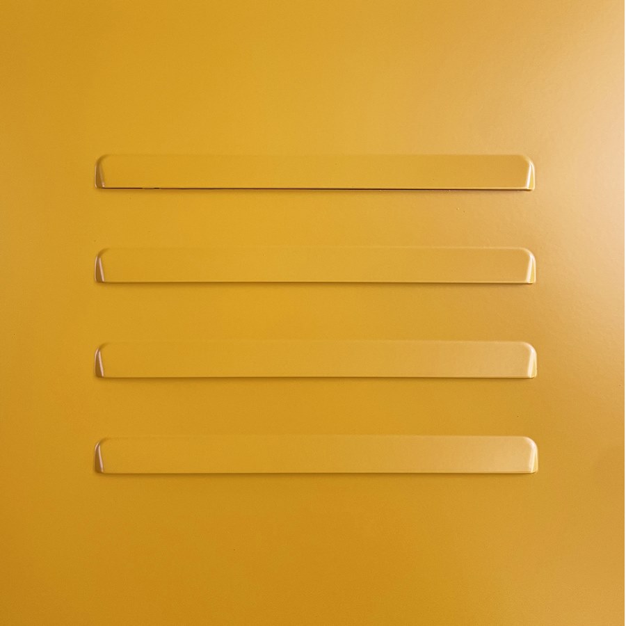 Armadio metallico 2 ante con divisorio sporco pulito, lato dx appendiabiti con ripiano superiore, lato sx 5 ripiani. Color senape (RAL 1006). Dimensioni (LxPxA): 85x50x190 cm. Sp. metallo 0,6 mm.