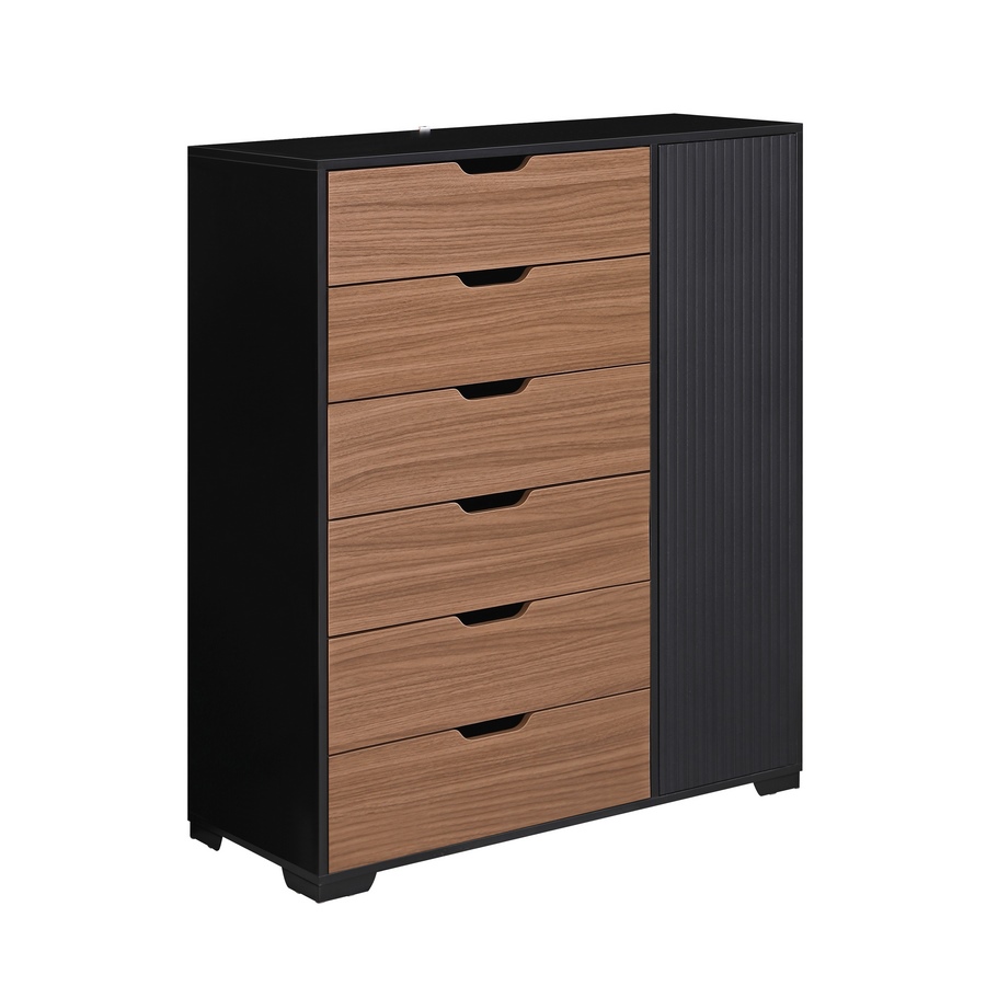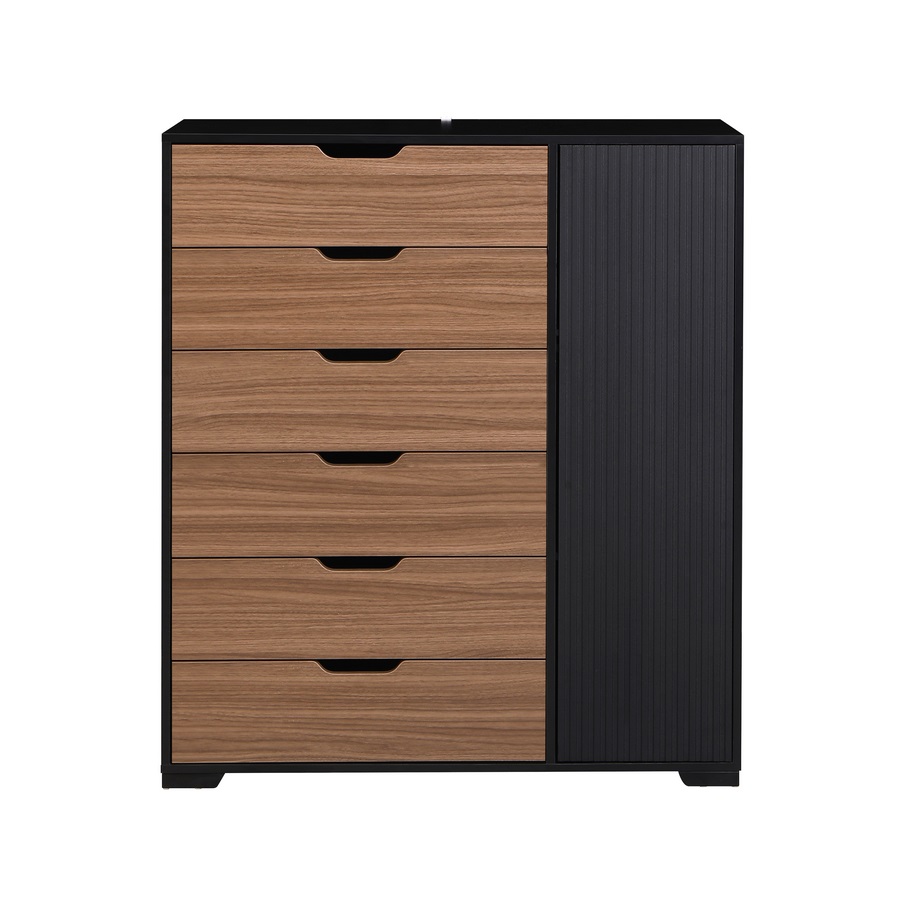 Cassettiera moderna in legno noce e nero 6 cassetti e anta 100x40x117 cm – Toledo