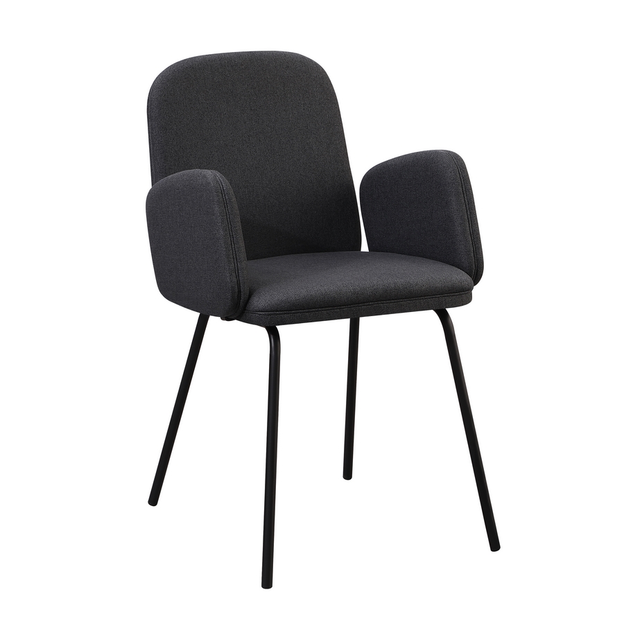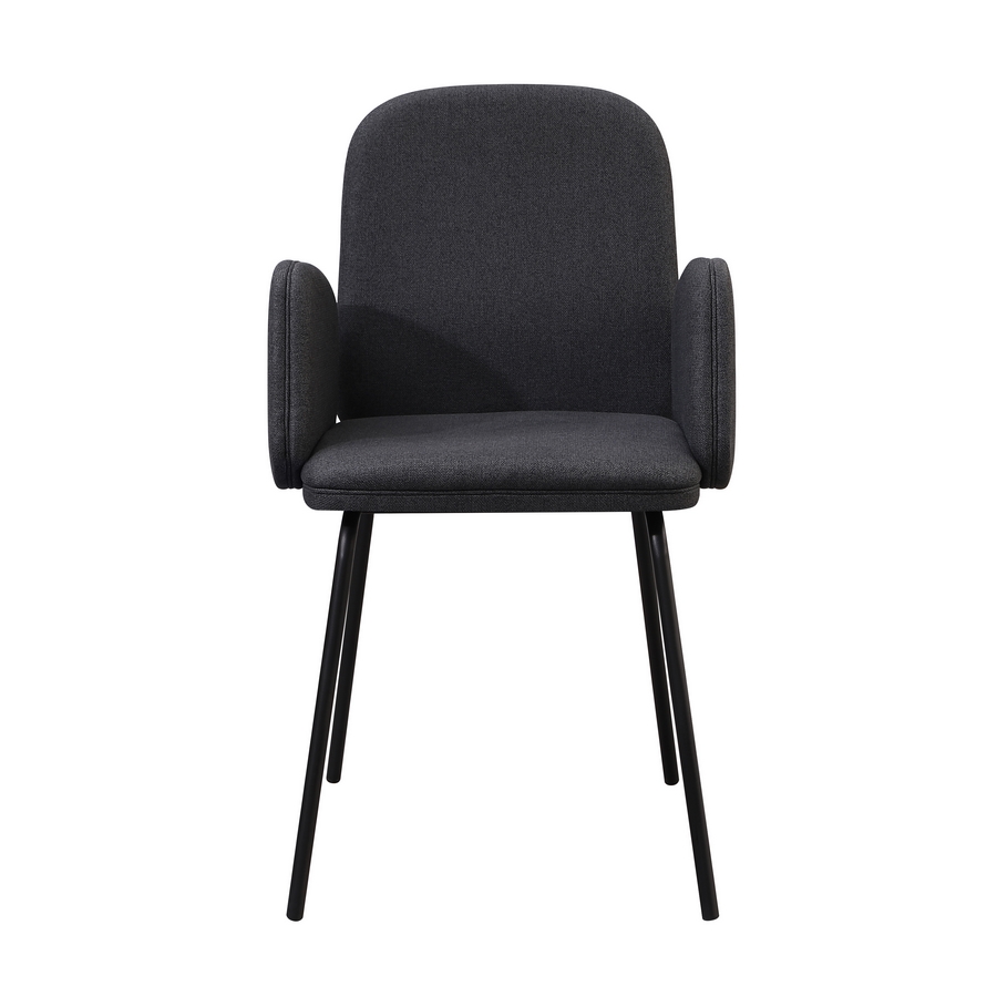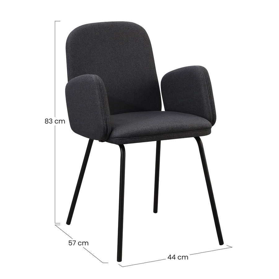 Questo set di 2 sedie offre un perfetto equilibrio tra comfort e design moderno. Il rivestimento in tessuto grigio scuro dona un look elegante e versatile, mentre i braccioli integrati garantiscono una seduta comoda e accogliente. Le gambe in metallo nero assicurano stabilità e uno stile contemporaneo adatto a vari ambienti domestici.