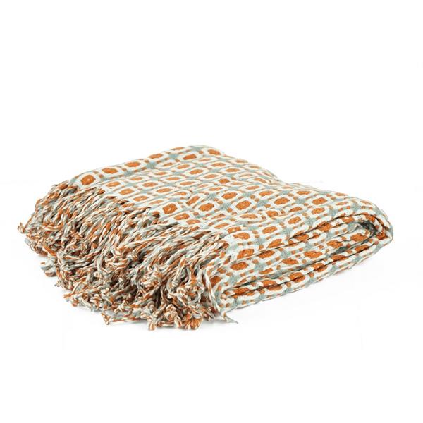 Nelle misure 130x170 cm e le comode frange sul bordo, la rendono versatile e multiuso: potrà fungere da coperta nelle sere fresche autunnali o semplicemente come complemento d'arredo per arricchire di stile il tuo divano. Con ricami colorati che variano dall'arancione, al bianco e al grigio doneranno colore e stile al tuo indoor.