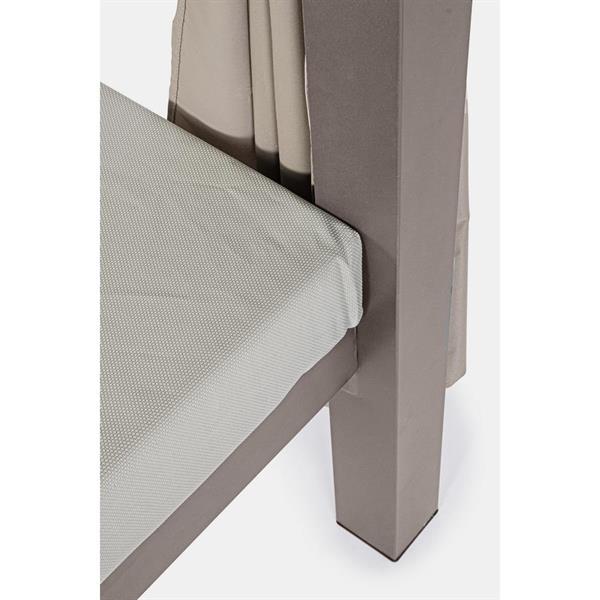 Realizzato con materiali di alta qualità, il telaio in alluminio verniciato a polvere da 2 mm garantisce resistenza alla corrosione e lunga durata, mentre le tende in tessuto creano una zona d’ombra intima e protetta dal vento. I cuscini spessi 10 cm, con imbottitura in dryfoam e rivestimento in olefina da 190 gr, assicurano un comfort eccezionale anche all’aperto. Il design moderno con schienale reclinabile e finiture neutre si adatta perfettamente a qualsiasi ambiente outdoor.