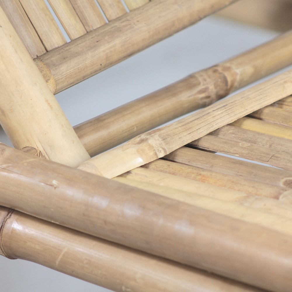 Ideale per giardini, terrazze, bordo piscina o verande, questo lettino è facilmente abbinabile agli altri arredi in bamboo per creare una zona lounge coerente e accogliente.