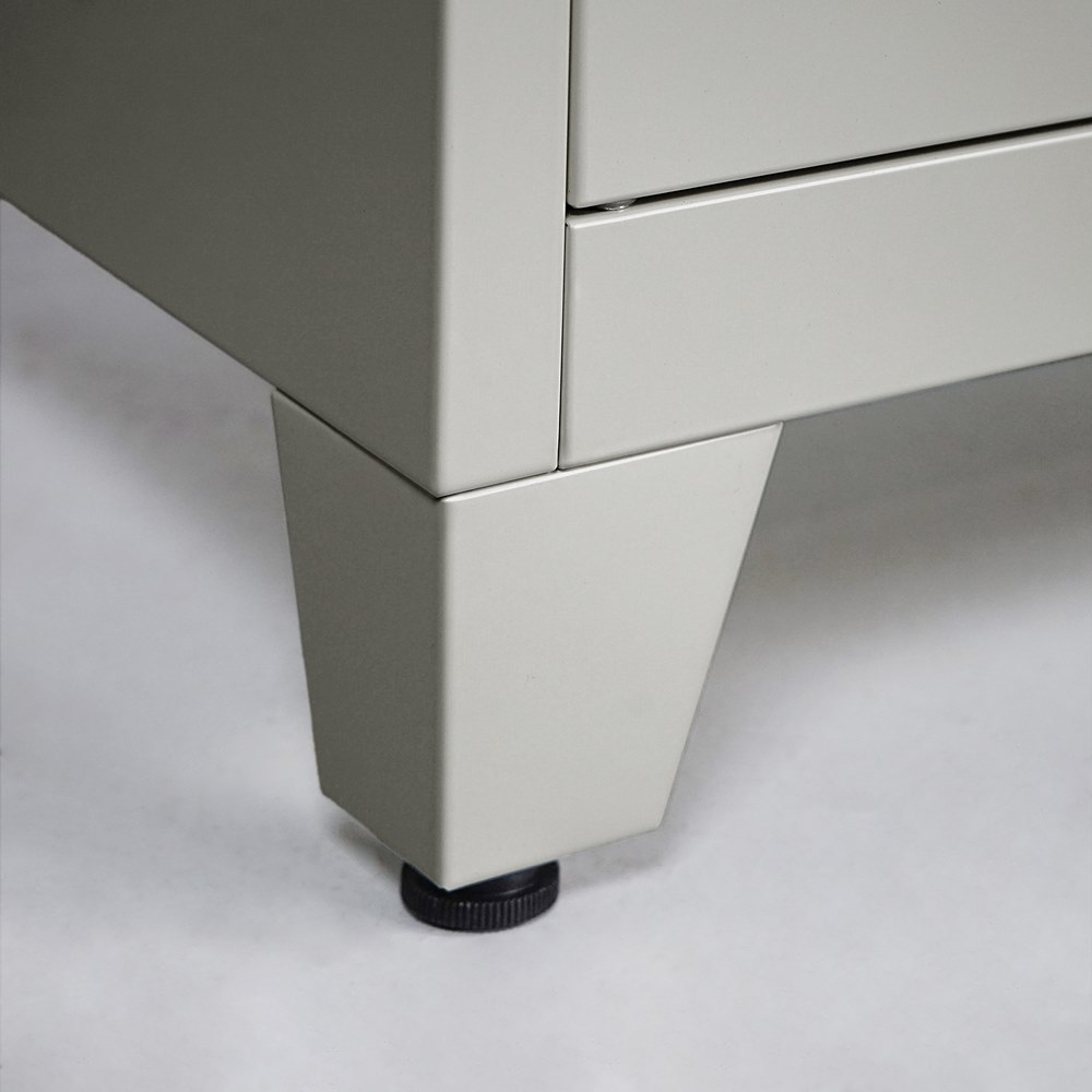 Mobile in metallo 2 ante e 5 ripiani (3 a vista). Colore grigio (RAL7035). Dimensioni (LxPxA): 85x45x190 cm. Altezza ante 82 cm. Distanza tra un ripiano e l'altro 36cm. Sp. metallo 0,6 mm.