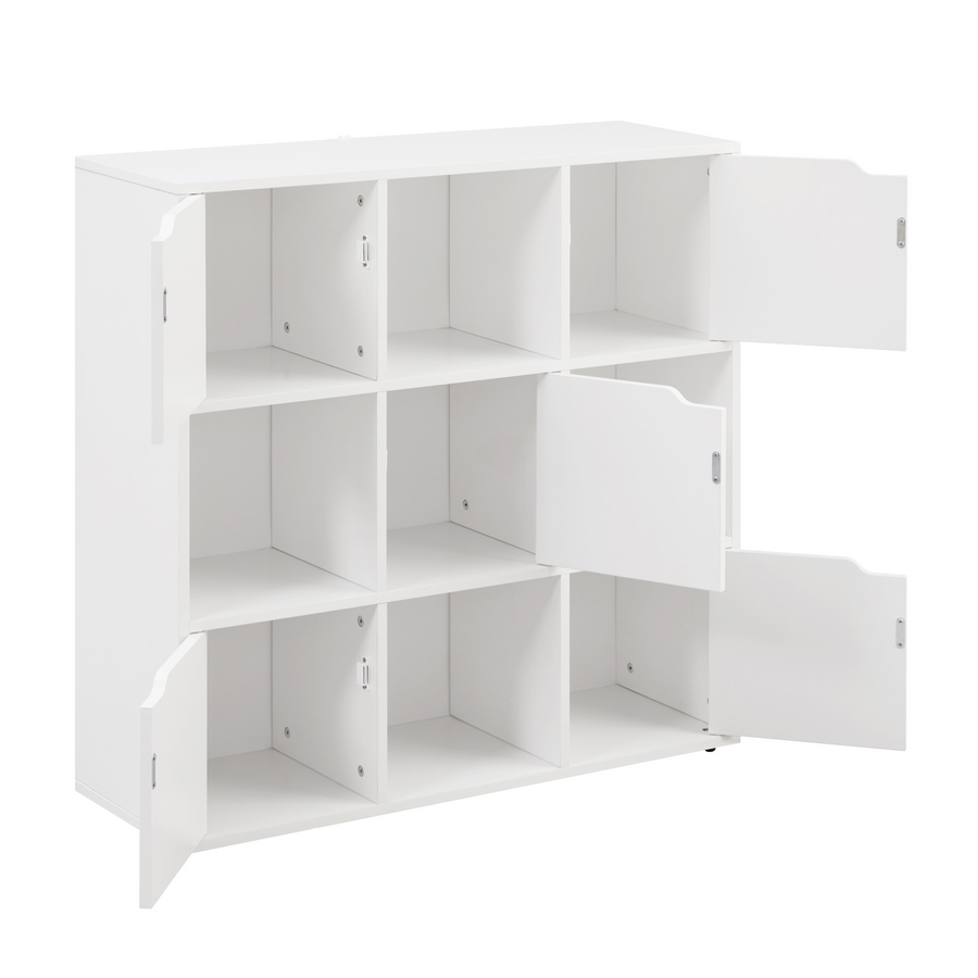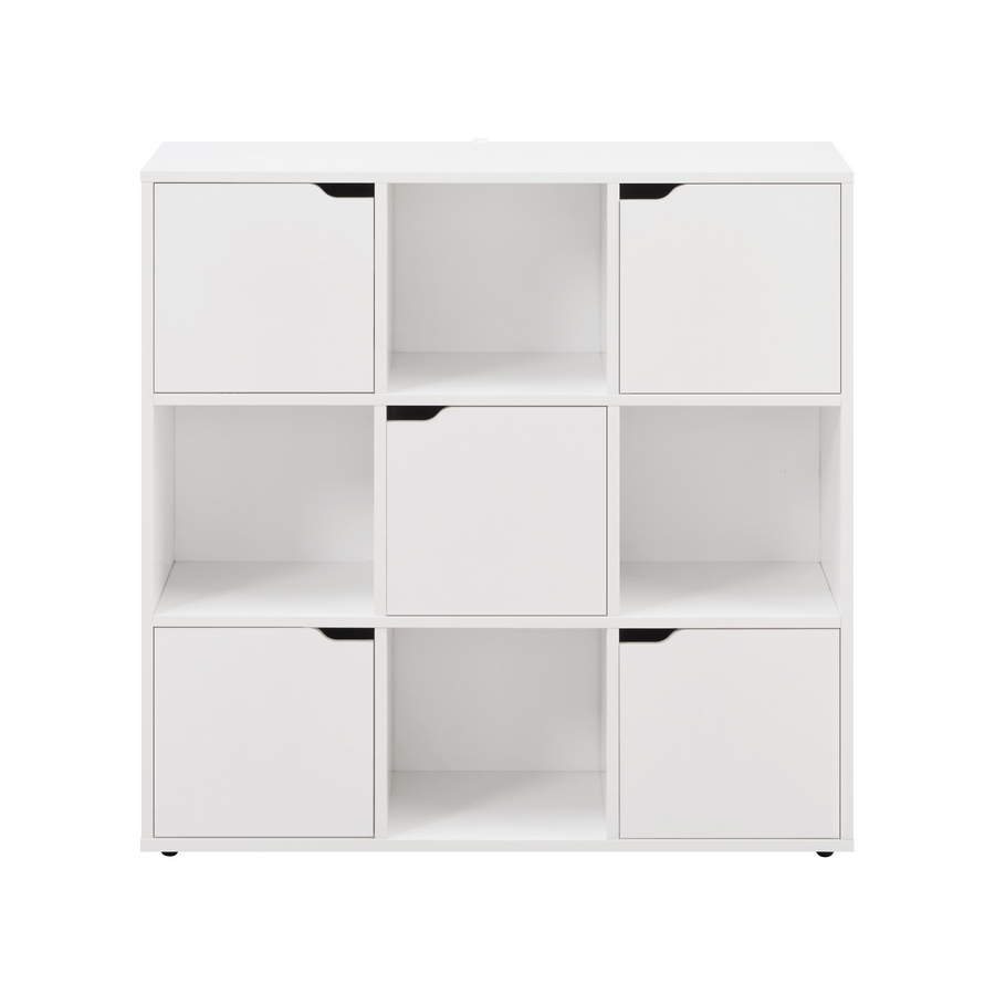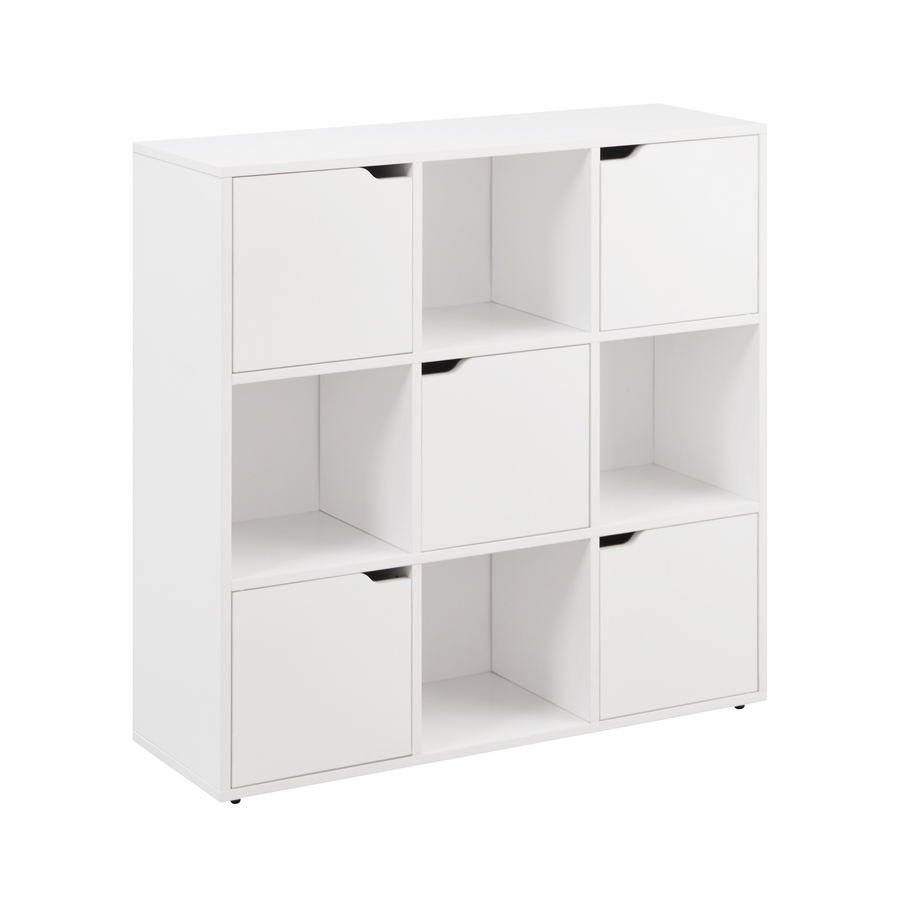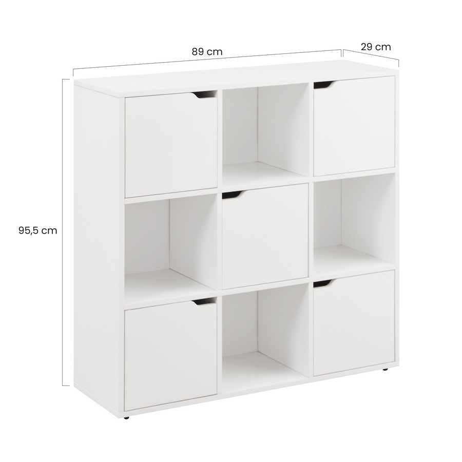 Questa libreria a 9 cubi con 5 ante è la soluzione perfetta per organizzare libri, documenti e oggetti decorativi con stile. La finitura bianca dona luminosità e un tocco moderno a qualsiasi ambiente, rendendola ideale per soggiorni, camere o uffici.
