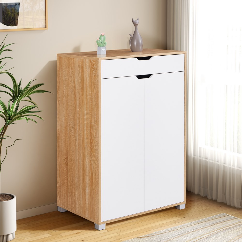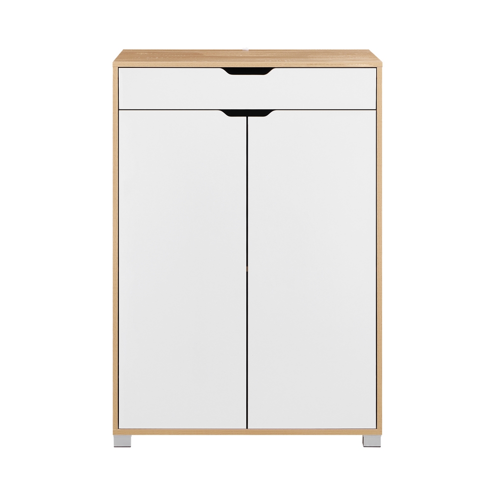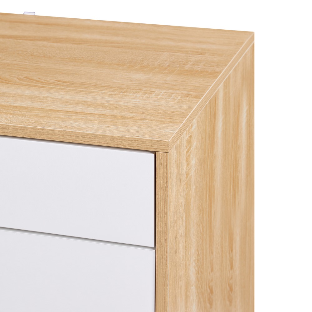 Questo mobiletto con 2 ante e 1 cassetto è una soluzione pratica e versatile per organizzare gli spazi della casa con stile. La combinazione tra il bianco e la finitura rovere naturale dona un aspetto moderno e luminoso, facilmente abbinabile a diversi contesti d’arredo.