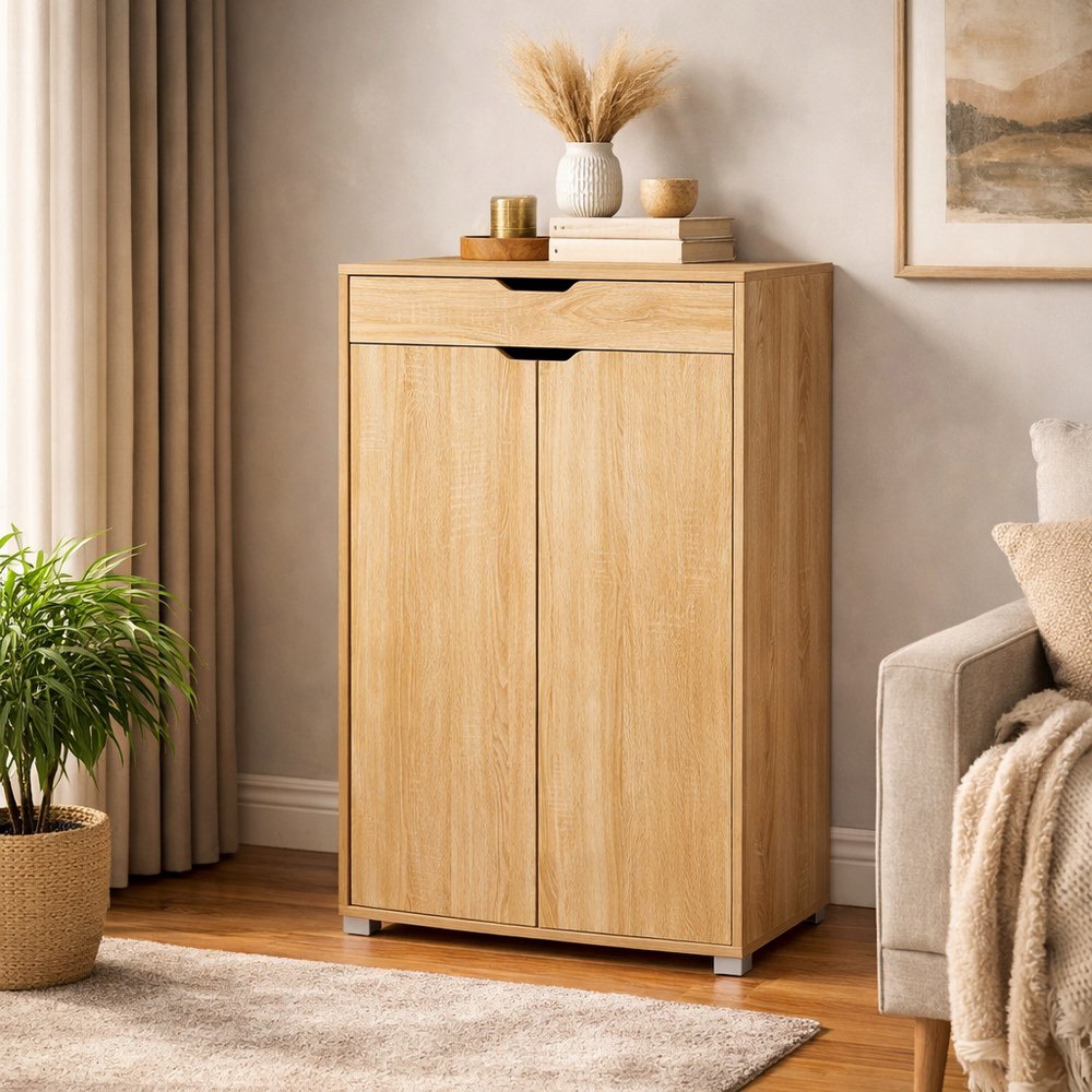 Compatto ma capiente, è ideale come mobile contenitore per ingresso, bagno, soggiorno o camera da letto. Il cassetto superiore è pratico per riporre oggetti di uso quotidiano, mentre le due ante nascondono un vano interno perfetto per mantenere l’ambiente ordinato.