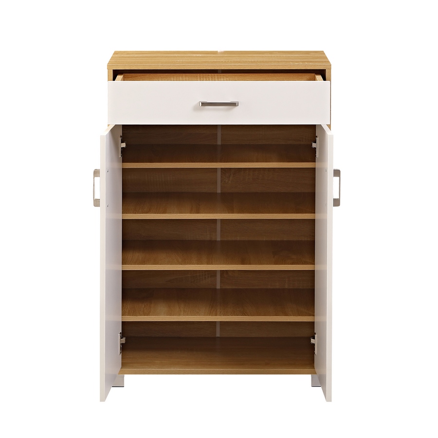 Questo mobiletto combina la luminosità del bianco con la naturalezza del rovere, creando un arredo versatile e moderno. Dotato di 2 ante e 1 cassetto, offre uno spazio contenitivo pratico per soggiorno, cucina, ingresso o camera da letto. La struttura compatta e funzionale lo rende ideale per organizzare oggetti, utensili o biancheria.