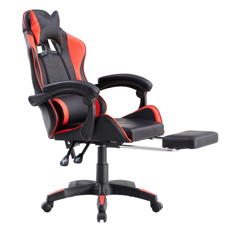 Con la Sedia gaming da scrivania stare lunghe ore alla scrivania per lavoro o per svago non sarà più un problema. La Poltrona da gaming ha tutto per mantenere alto il livello di comfort anche con il passare delle ore. La struttura in polipropilene fa da base a una poltrona fatta da comodissimi cuscini rivestiti da pvc. Se a questo si aggiunge la presenza del comodissimo poggiapiedi e la reclinazione regolabile dello schienale, la nuova poltrona da gamer appare in tutta la sua potenziale comodità.