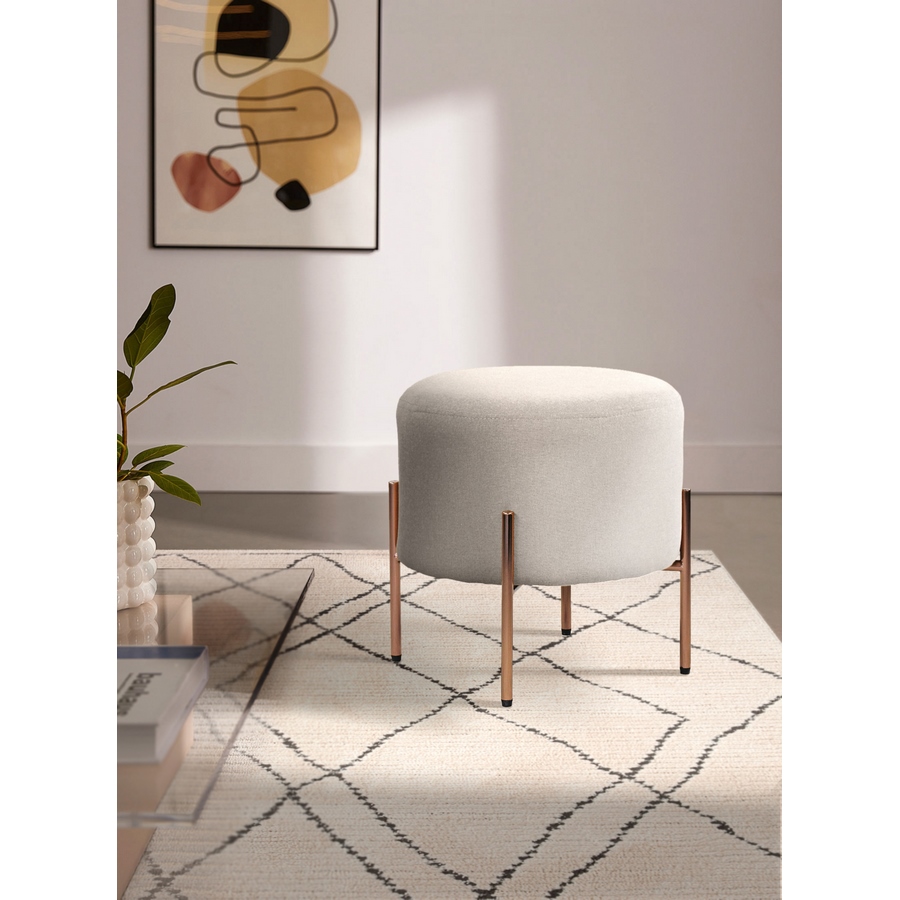 Scegli il nostro pouf tondo "Kate", la soluzione ideale, salvaspazio, per chi desidera un comodo poggiapiedi o uno sgabello dal design moderno. Il rivestimento è in lino color grigio chiaro, l'imbottitura in soffice spugna e le gambe metalliche color oro conferiscono a questo componente d'arredo il giusto mix di eleganza e modernità. Perfetto per la tua living room o per la tua camera da letto.