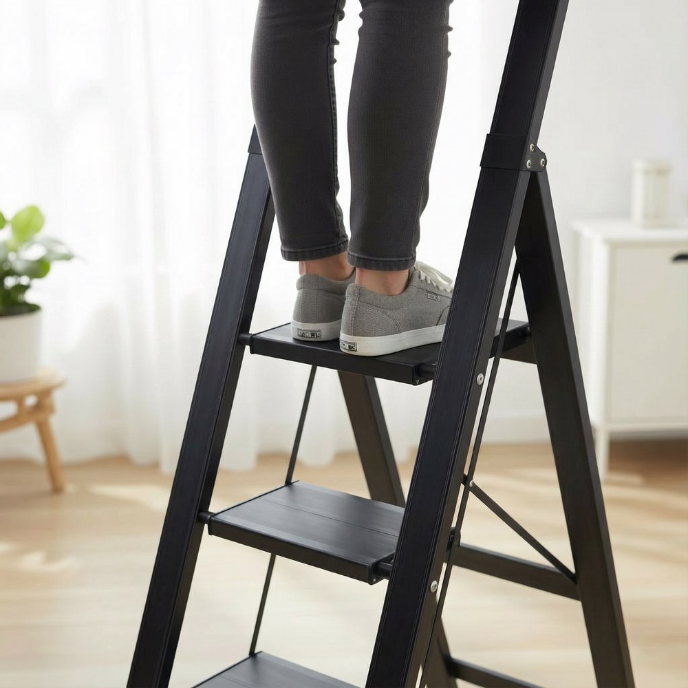 Consiglio d’uso: ideale per ambienti moderni e per chi necessita di un’altezza maggiore, questa scala a 4 gradini in finitura nera unisce funzionalità ed estetica, garantendo sicurezza e comfort in ogni utilizzo quotidiano.