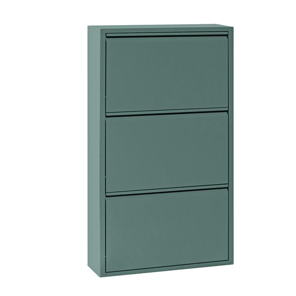 Grazie alla profondità ridotta e al design slim, è l’ideale per ingressi o corridoi. Le 3 ante a ribalta consentono di riporre fino a 12 paia di scarpe, mantenendo l’ambiente ordinato e ben curato. Il colore verdone aggiunge carattere e si abbina perfettamente a spazi dallo stile moderno o naturale.