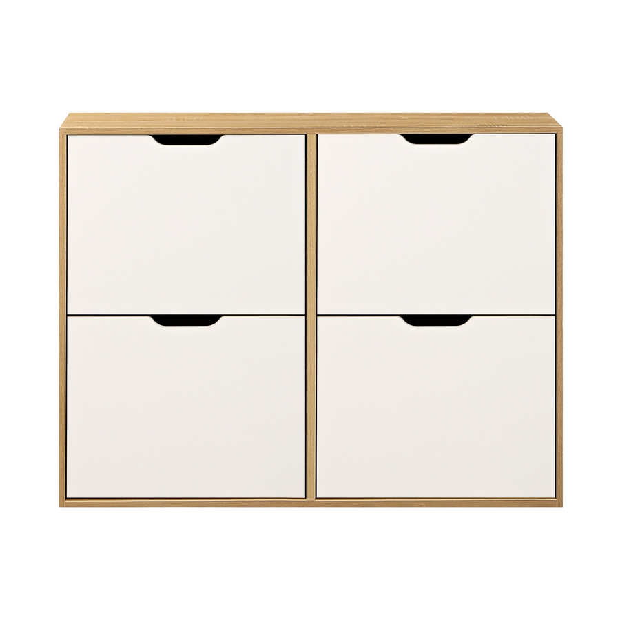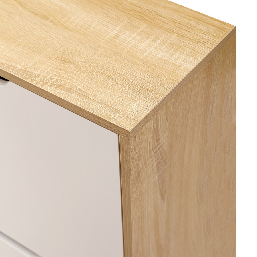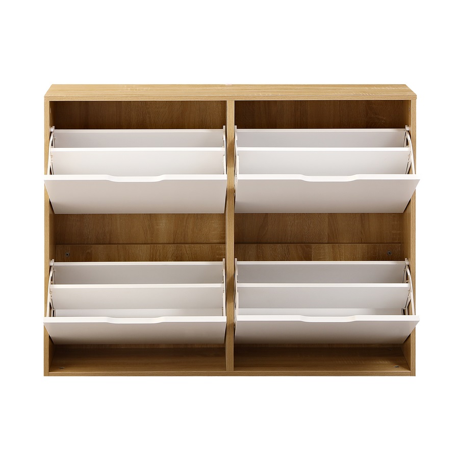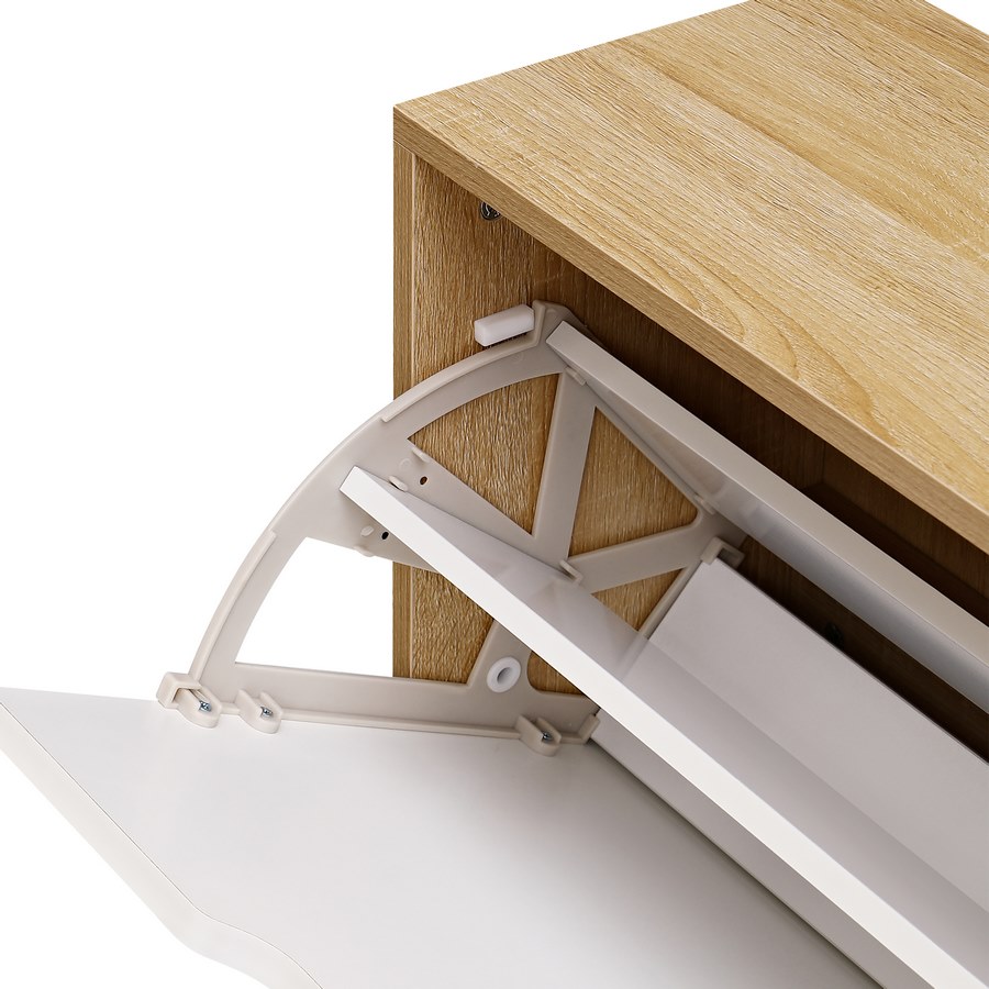 Questa scarpiera a 4 vani combina estetica moderna e praticità, grazie all’abbinamento del bianco con il rovere naturale. La struttura compatta e salvaspazio la rende ideale per ingresso, camera da letto o guardaroba. I vani ribaltabili permettono di organizzare ordinatamente scarpe e accessori, mantenendo l’ambiente sempre in ordine.