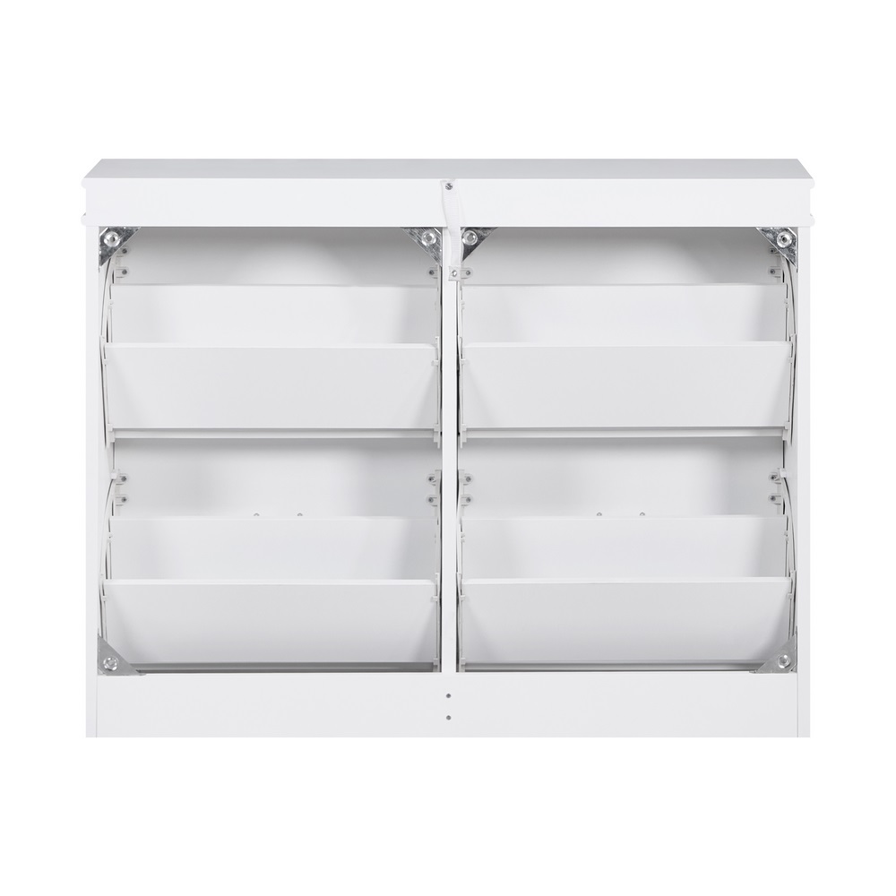 Con dimensioni 105x24x82h cm, offre un design compatto e salvaspazio, ideale anche per ambienti di dimensioni ridotte. La struttura è dotata di 4 ribalte, di cui 2 orizzontali e 2 verticali, pensate per organizzare al meglio le scarpe mantenendo tutto ordinato.