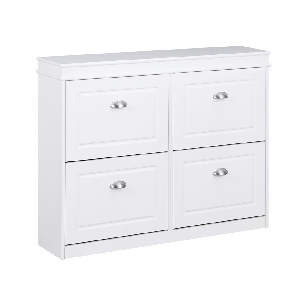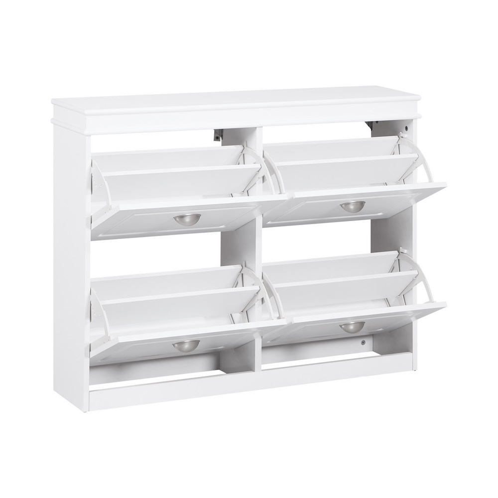 La scarpiera bianca bugnata con 4 ribalte è una soluzione pratica ed elegante per mantenere in ordine l’ingresso o la zona guardaroba.