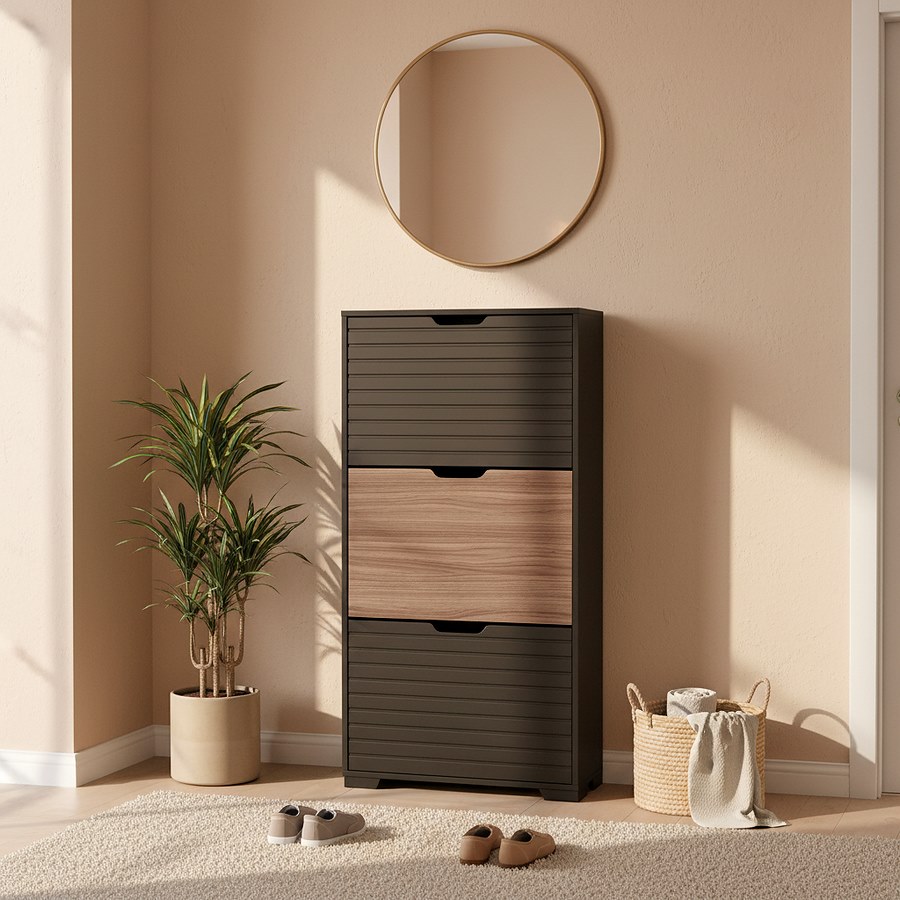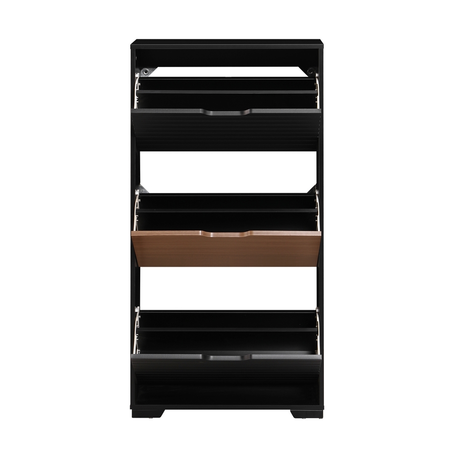 Scarpiera in legno con 3 ante a ribalta noce e nero 63x26x125 cm – Toledo