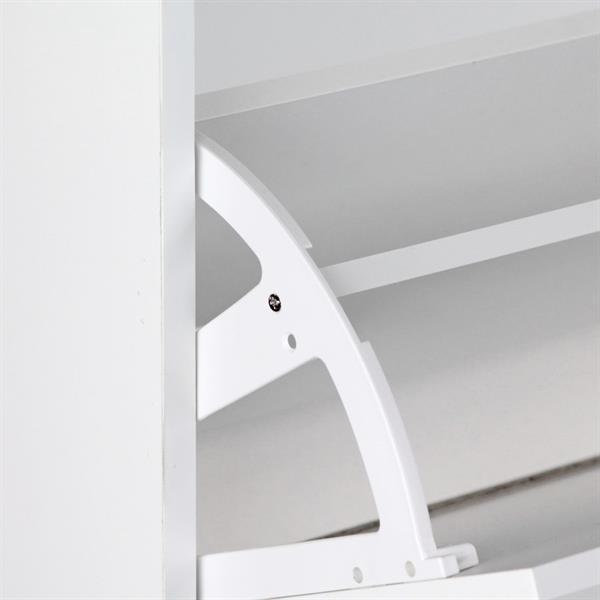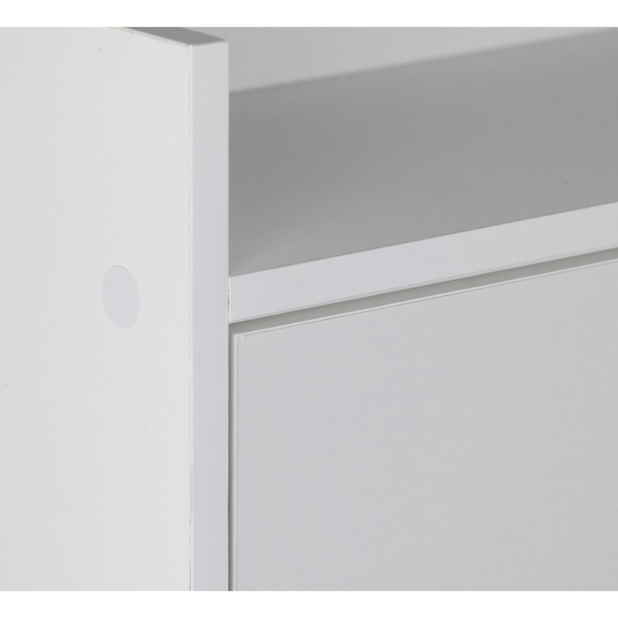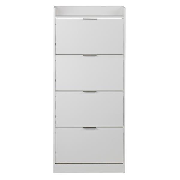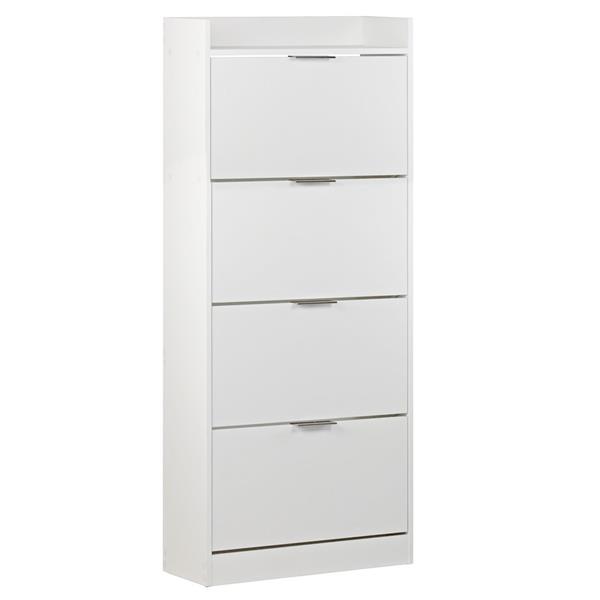 Tutte le tue calzature troveranno spazio in questa bellissima scarpiera salvaspazio dal design moderno. La nuova scarpiera Marta ha struttura in legno melaminico color bianco opaco, 4 ribalte con doppio ripiano e maniglie stilizzate in alluminio.