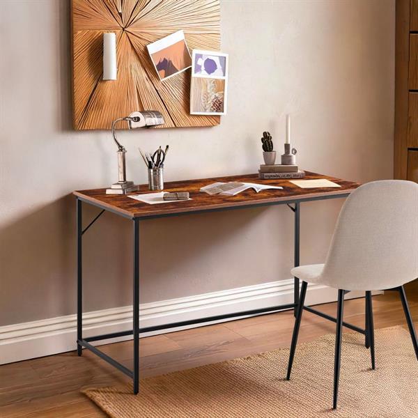 Porta carattere e funzionalità nel tuo spazio di lavoro con questa scrivania industrial da 120x60 cm. Il piano effetto legno rustico e la solida struttura in metallo nero opaco si combinano in un design sobrio ma di grande impatto, ideale per ambienti moderni, uffici domestici, camerette o studi professionali. Il top in legno melaminico spesso 15 mm garantisce una superficie resistente e facile da pulire, perfetta per l’uso quotidiano. La struttura in acciaio verniciato, con rinforzi laterali e barra di stabilizzazione alla base, assicura solidità e lunga durata. I piedini regolabili permettono di adattare l’altezza della scrivania al pavimento, evitando fastidiosi movimenti o inclinazioni. L’ampio piano da lavoro, di questa scrivania da ufficio moderna, offre spazio sufficiente per computer, stampanti, libri o materiale creativo. L’assemblaggio è semplice e veloce, grazie al kit incluso e alle istruzioni chiare. Una soluzione pratica, elegante e funzionale per ogni esigenza di arredo. Estetica minimalista con finitura effetto legno rustico e struttura metallica nera, di questa scrivania legno e metallo, è perfetta per ambienti moderni o loft.