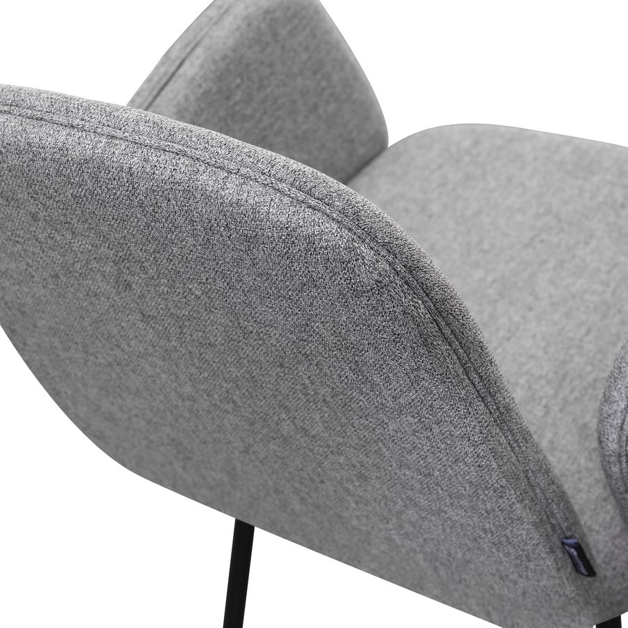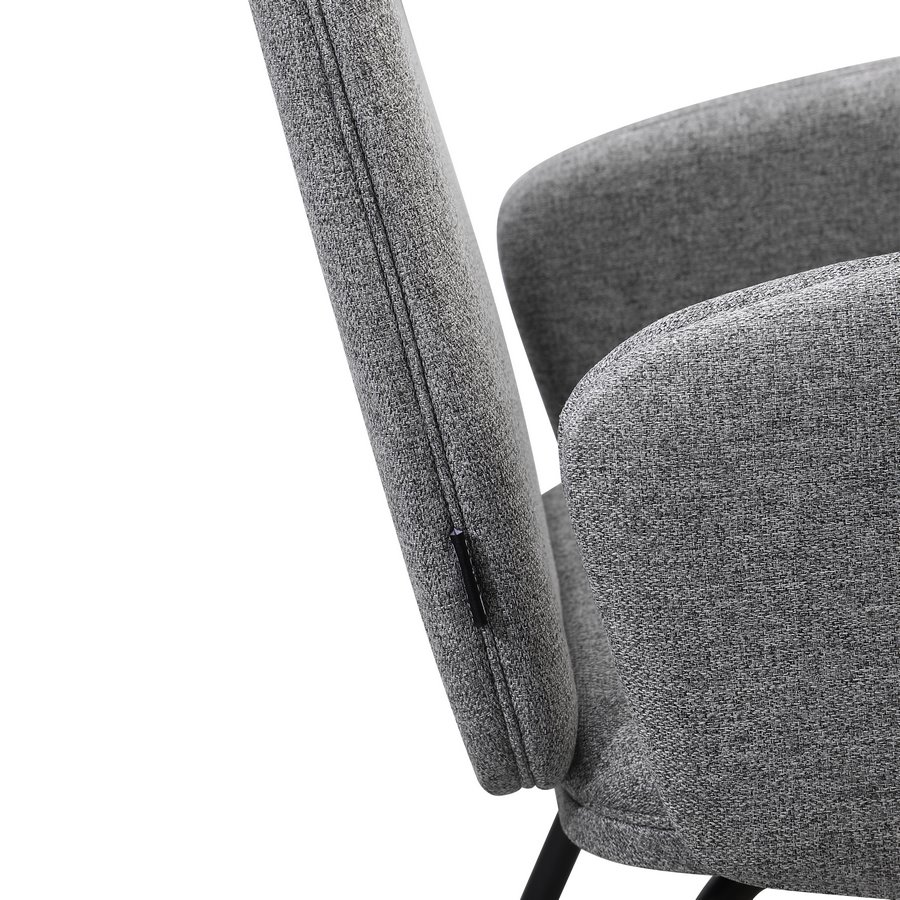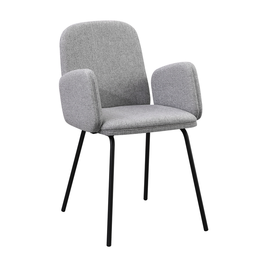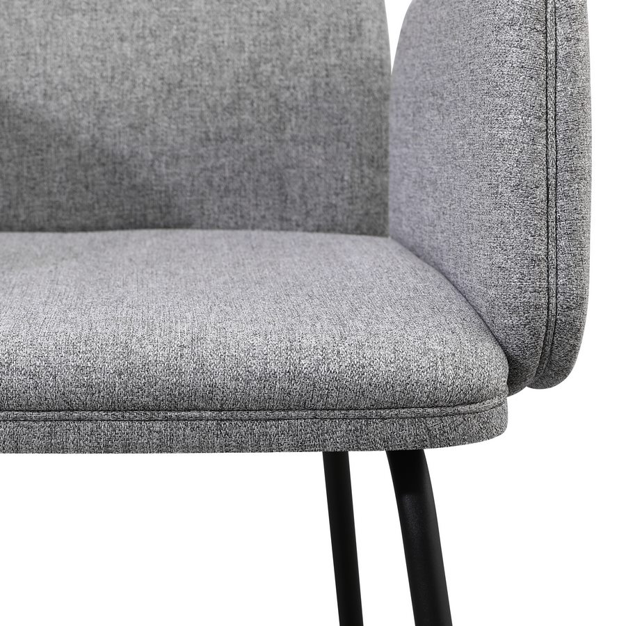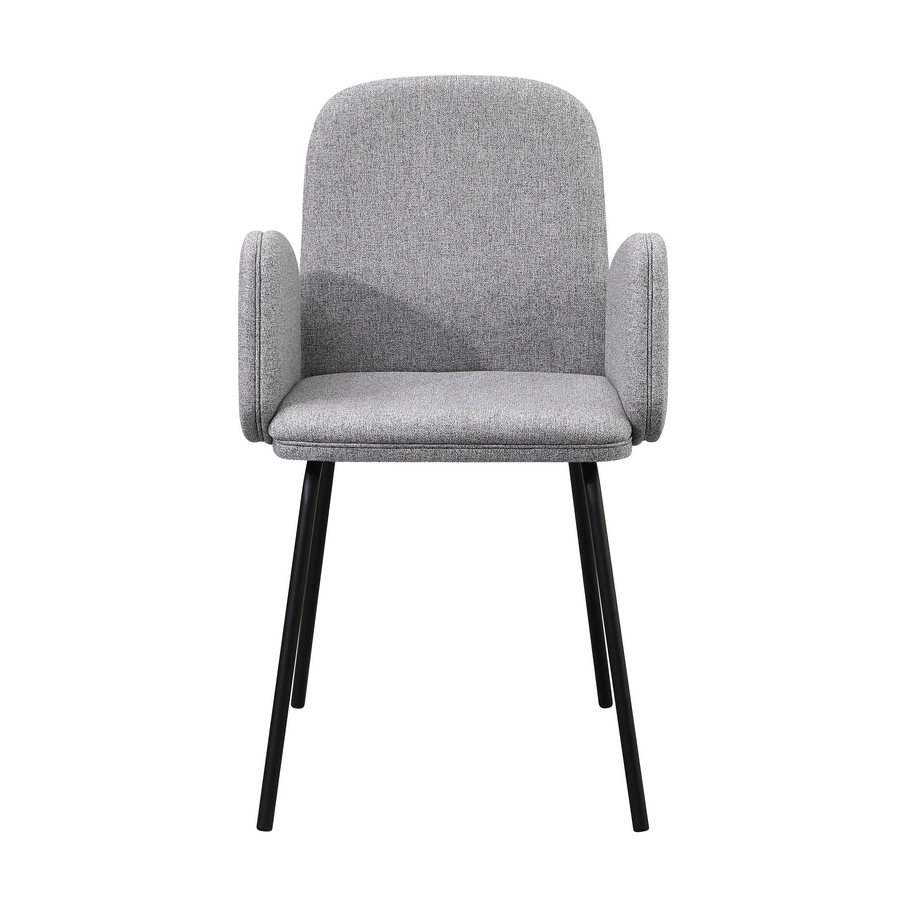 Questo set di 2 sedie offre uno stile moderno e luminoso grazie al rivestimento in tessuto grigio chiaro, ideale per ambienti contemporanei. La seduta imbottita con braccioli integrati assicura un comfort superiore, mentre le gambe in metallo nero garantiscono solidità e un look elegante, perfetto per cucine, sale da pranzo e living.