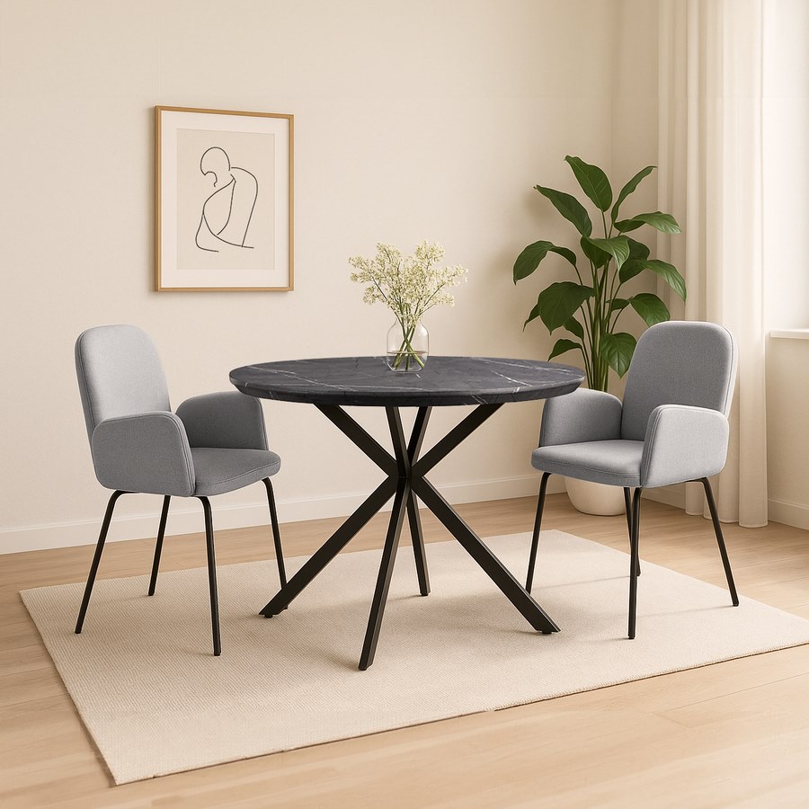 Consiglio d’arredo: il grigio chiaro si abbina perfettamente a tavoli in legno, bianco o nero, donando luminosità e un tocco moderno alla zona pranzo o all’ufficio.