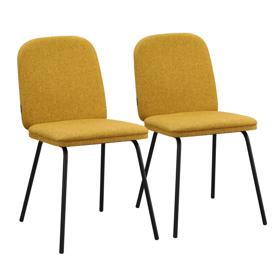 Questo set di 2 sedie in tessuto ocra è la scelta ideale per chi desidera aggiungere un tocco di colore caldo e contemporaneo alla propria casa. La tonalità ocra, elegante e attuale, illumina la stanza e si abbina facilmente ad arredi moderni. La seduta imbottita garantisce un comfort ottimale, mentre le gambe in metallo nero assicurano solidità e uno stile raffinato.