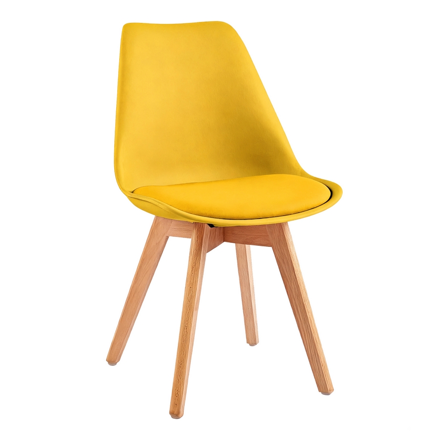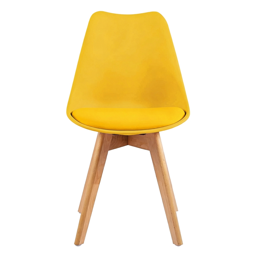 Un perfetto equilibrio tra design scandinavo e funzionalità: questo set da 4 sedie è ideale per arredare con stile la cucina, la sala da pranzo o lo studio. La scocca in polipropilene color senape dona un tocco vivace e contemporaneo, mentre le gambe in legno di faggio assicurano robustezza e calore visivo. Il cuscino imbottito in similpelle aumenta il comfort della seduta, rendendole ideali anche per l’uso quotidiano. I piedini sono dotati di tappi antigraffio per proteggere ogni tipo di pavimento.