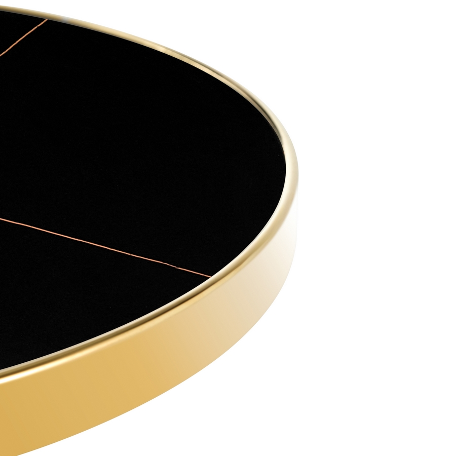 Questo tavolino unisce eleganza moderna e materiali di pregio. Il top in ceramica effetto marmo nero da 12 mm dona un aspetto raffinato e resistente, mentre il supporto in rame aggiunge un tocco di luce e ricercatezza, ideale per valorizzare soggiorni, camere e zone relax.
