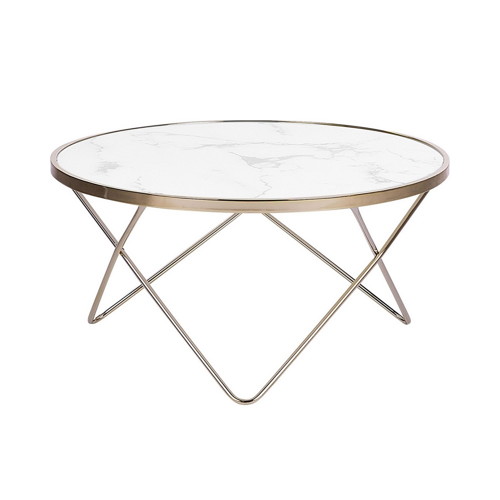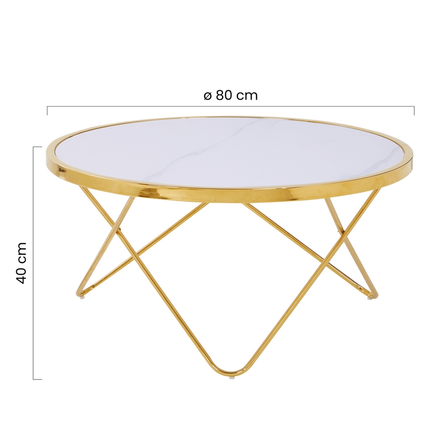 Questo tavolino tondo unisce eleganza e modernità grazie alla struttura dorata e al raffinato top effetto marmo bianco. Ideale come tavolino da salotto o complemento decorativo, aggiunge luminosità e stile all’ambiente. Il design rotondo e i materiali di qualità rendono questo elemento d’arredo perfetto per spazi moderni, glamour o minimal chic.