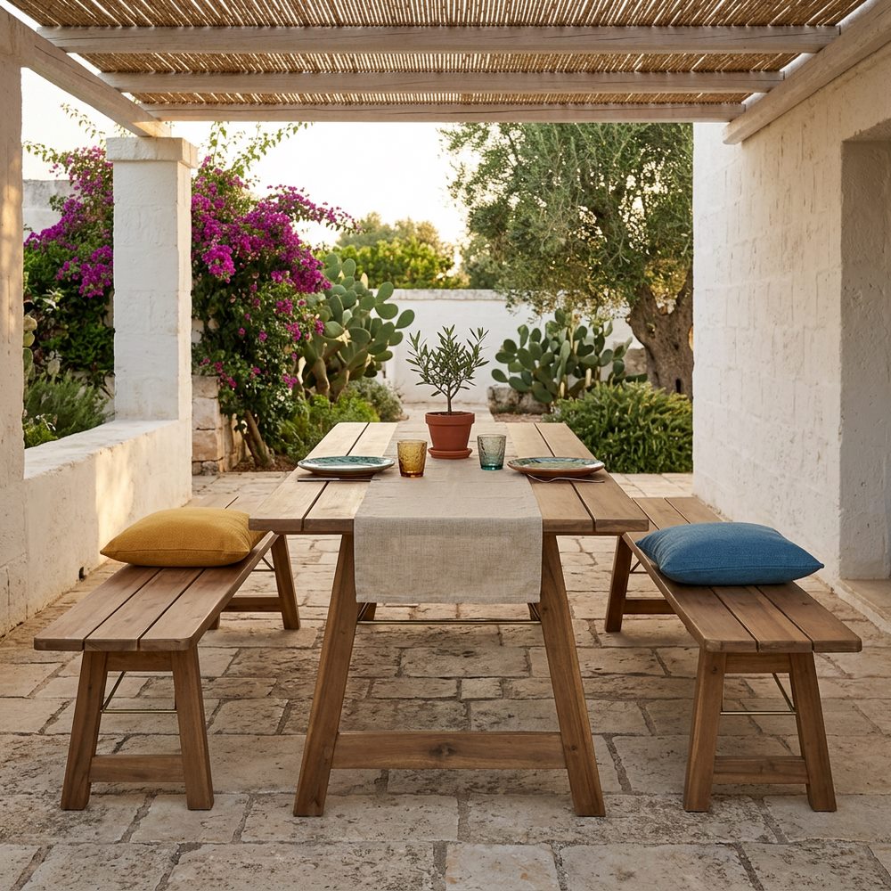 Il tavolo in legno di acacia oliata è una soluzione pratica ed elegante per arredare giardini, terrazze e spazi outdoor. Il design naturale valorizza le venature del legno, donando calore e autenticità all’ambiente.