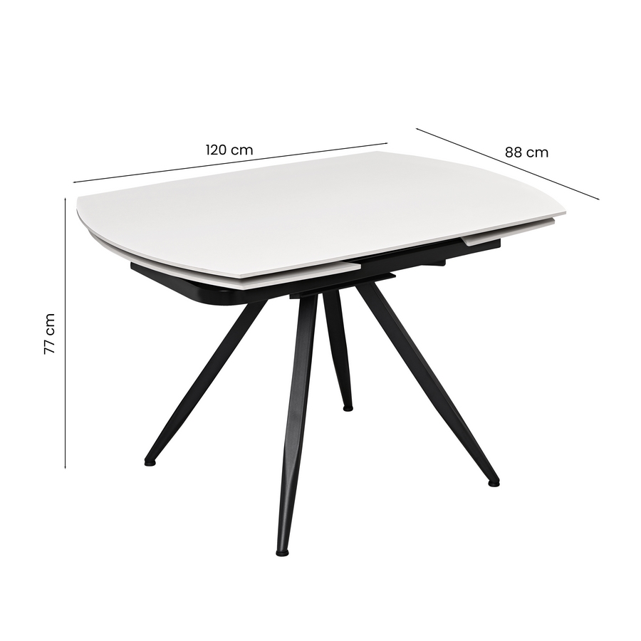 Questo tavolo da pranzo allungabile unisce eleganza e funzionalità grazie al top in ceramica bianco crema, raffinato e resistente. La superficie da 12 mm garantisce solidità e un aspetto moderno, mentre la struttura con gambe in metallo nero verniciato a polvere offre stabilità e un design contemporaneo. Il piano estensibile permette di passare facilmente da 120 a 180 cm, rendendolo ideale per ospitare più persone in cucina, soggiorno o sala da pranzo.