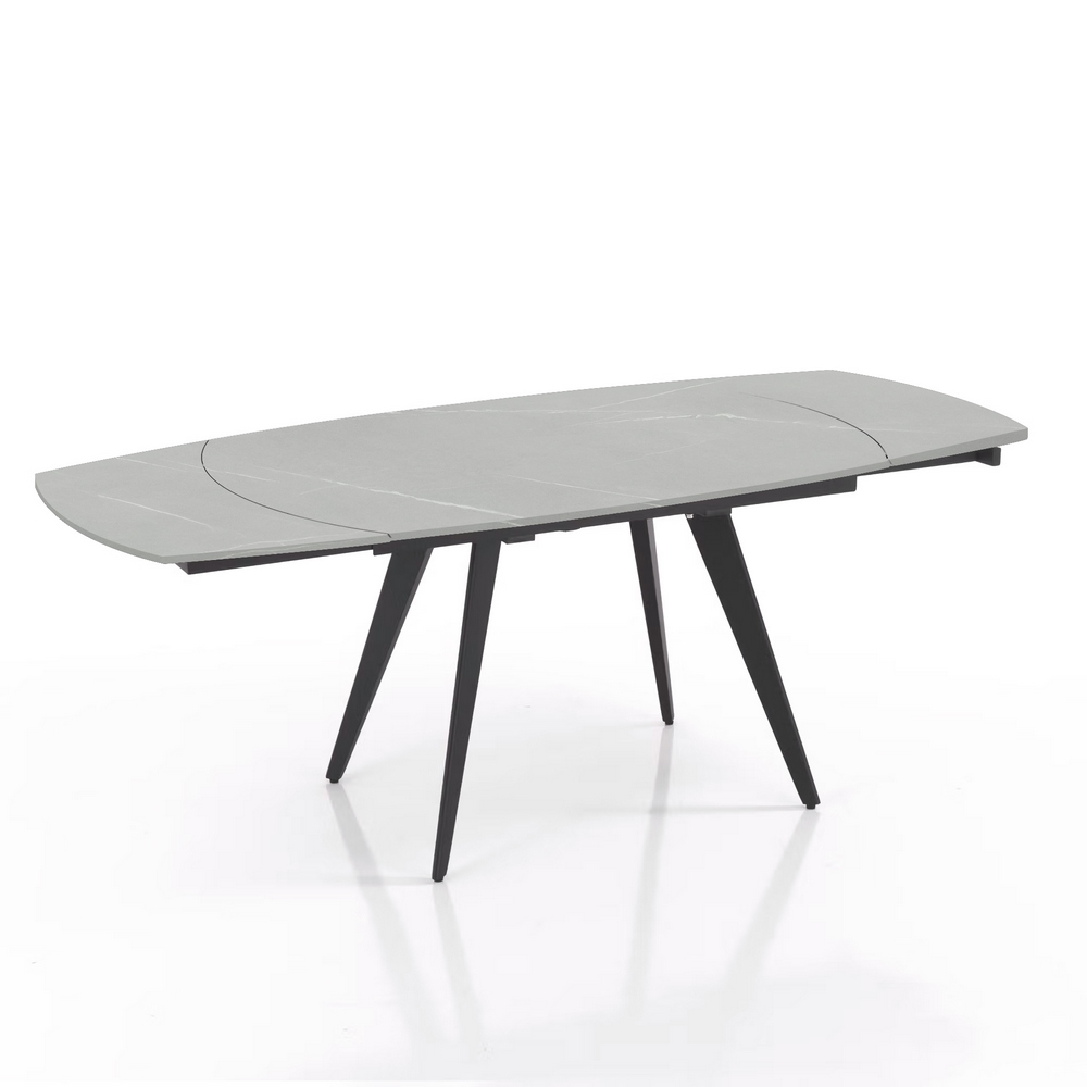 Consiglio d’arredo: perfetto abbinato a sedie nere, grigio chiaro o color tortora, questo tavolo allungabile valorizza ambienti moderni grazie all’eleganza della ceramica effetto marmo e alla solidità della struttura in metallo.