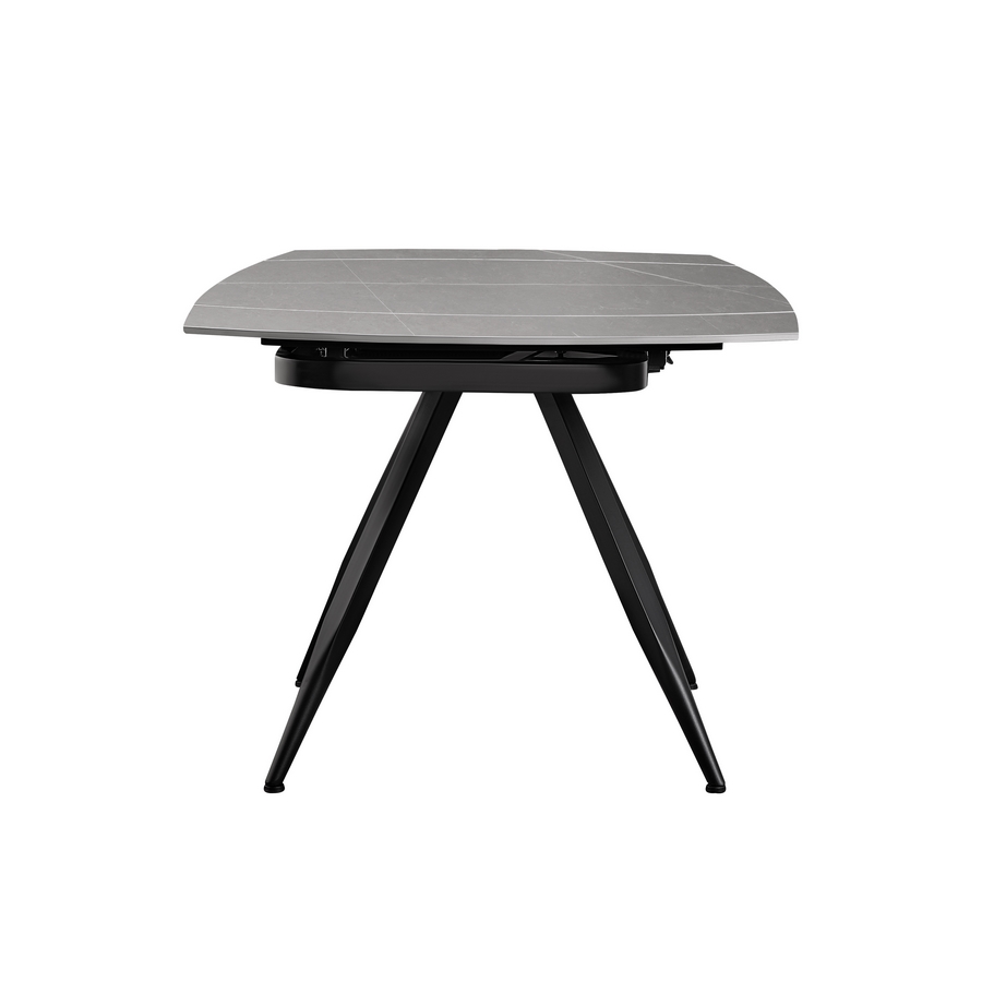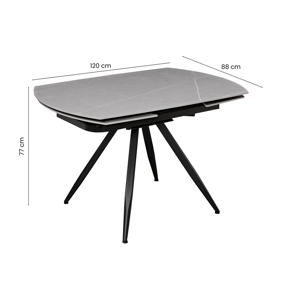 Questo tavolo da pranzo allungabile unisce design moderno e materiali di alta qualità. Il top in ceramica effetto marmo grigio chiaro da 12 mm dona eleganza e resistenza, mentre la struttura con gambe in metallo nero verniciato a polvere assicura stabilità e un’estetica contemporanea. Grazie al meccanismo di estensione, il piano passa facilmente da 120 a 180 cm, rendendolo ideale per ospitare più persone in cucina o soggiorno.