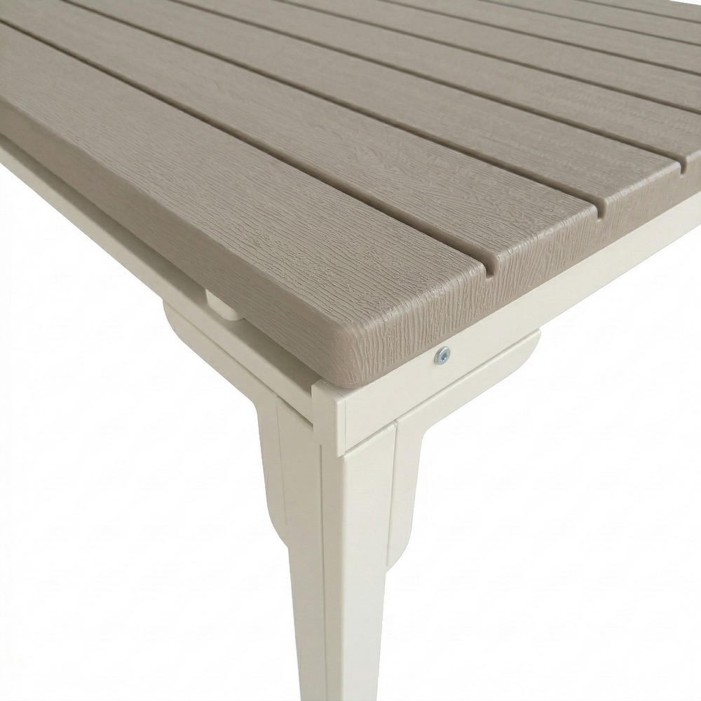 Il tavolo estensibile Andy in resina HDPE color tortora è una soluzione versatile ed elegante, ideale per arredare giardini, terrazze e verande con uno stile moderno e armonioso. La finitura tortora, uniforme su piano e gambe, dona un effetto raffinato e facilmente abbinabile a diversi contesti outdoor.