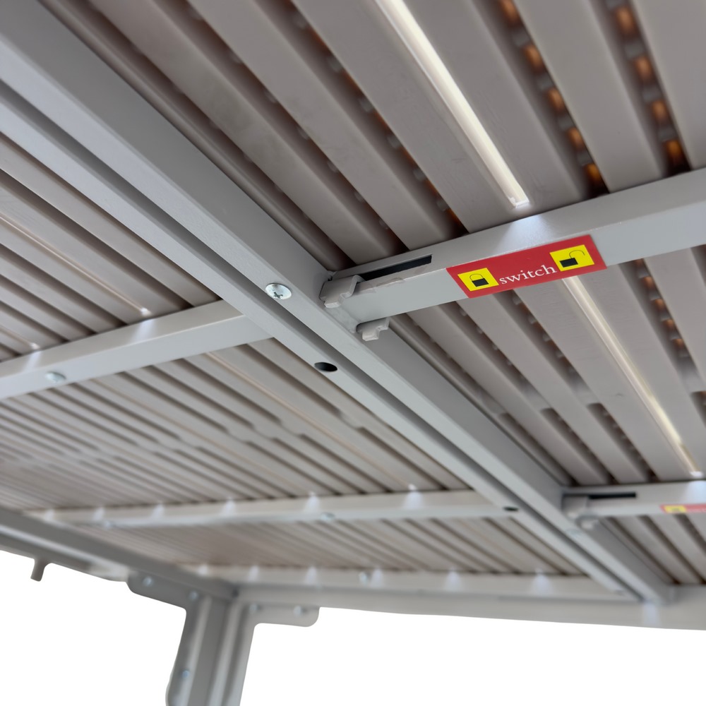 Il top in resina anti UV è progettato per resistere all’esposizione solare e agli agenti atmosferici, mantenendo nel tempo colore e qualità. La struttura metallica verniciata a polvere garantisce stabilità, robustezza e protezione contro corrosione e usura.